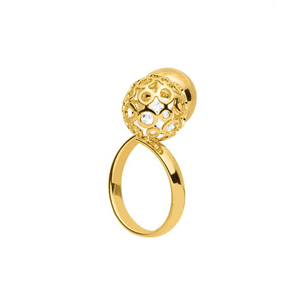ANEL BOLA LISA 10MM E BOLA TELADA 9MM COM CRISTAIS