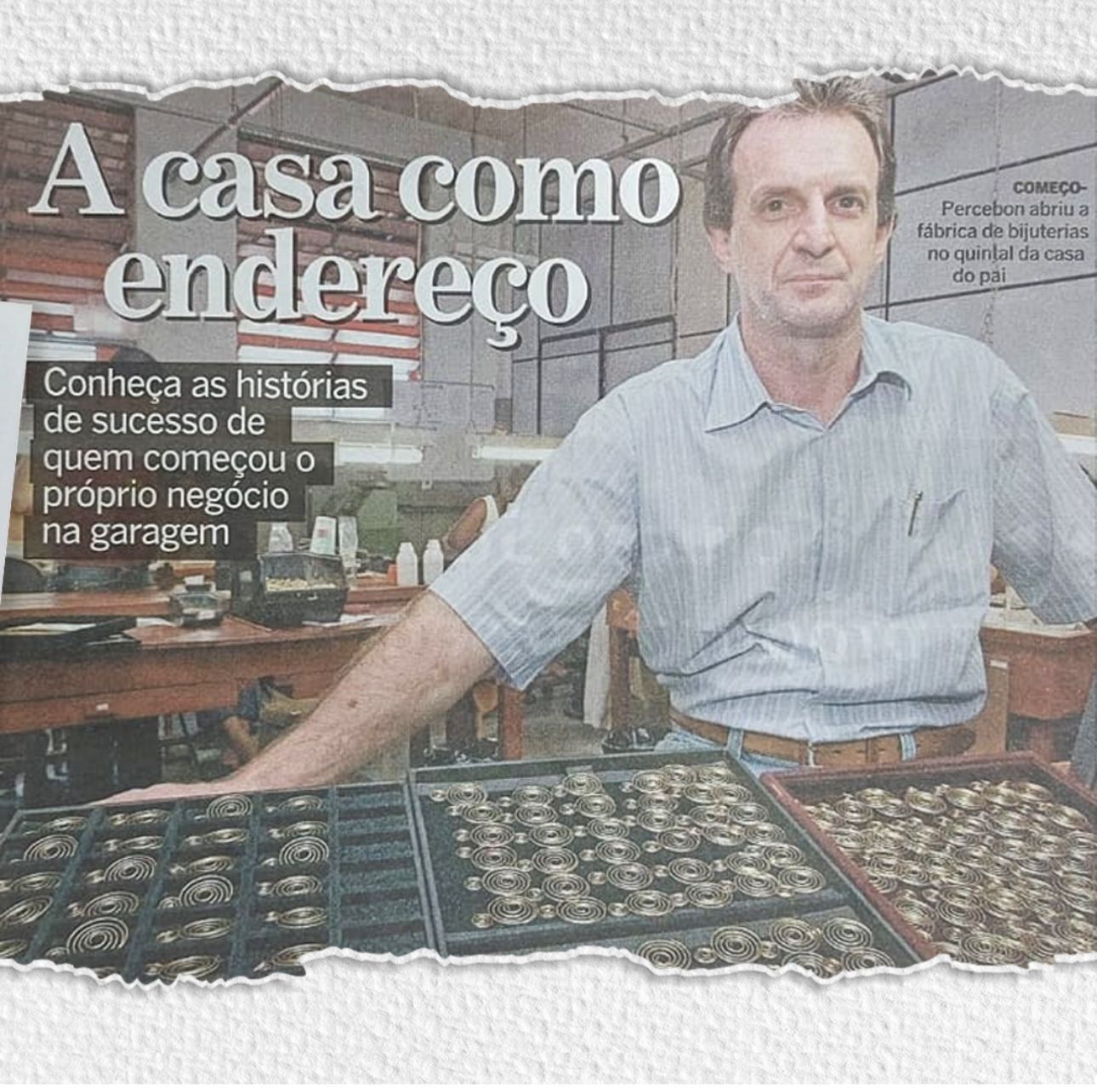 Localizado na Capital da Semijoia Folheada o GRUPO PERCEBON foi fundada em 1987 por Antônio Percebon e seu filho Ângelo Percebon, iniciando suas atividades em uma pequena instalação no fundo de seu quintal. Com o tempo, a demanda por seus produtos cresceu significativamente, levando-os a buscar um espaço maior para atender melhor às necessidades de seus clientes.